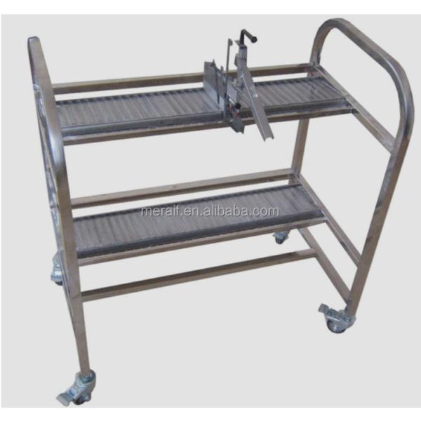 Technology: steel plate die made of feeder positioning plate, and placement machine FEEDER platform, like the feeder placement principle, to achieve a perfect four-point positioning, the top of the use of large arc, to avoid acute angle, the design is divided into upper and lower layers, feeder installed after the sturdy and beautiful, with a grounding chain, effective anti-static;feeder vehicle features: feeder vehicles made stainless steel processing, body firm, lightweight, durable, flexible,the overall feeder platform are used manual welding process, the installation of anti-static towline, free to move,with brake device. Points up and down two layers, a total of 70 feeder can be loaded. Widely used in the SMT production workshop FEEDER turnover and placement, placed a smooth, free to play, greatly increasing the work efficiency. Are made of stainless steel and aluminum.